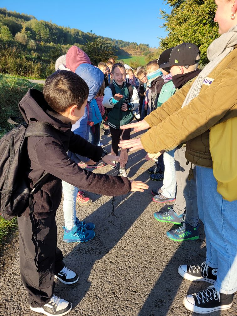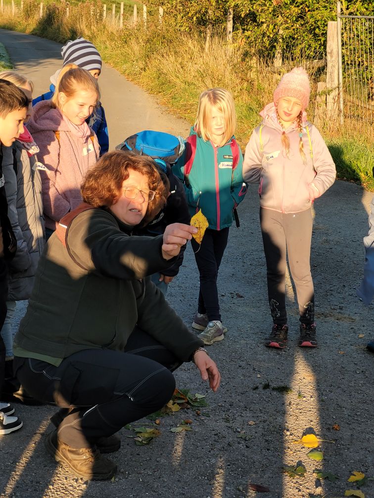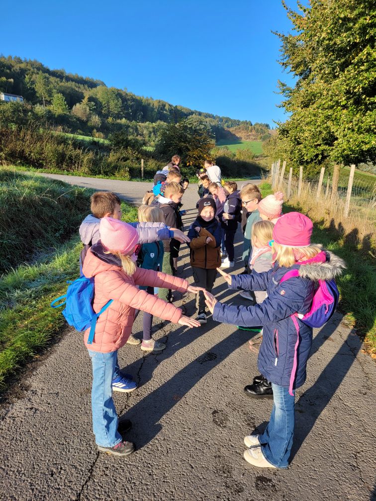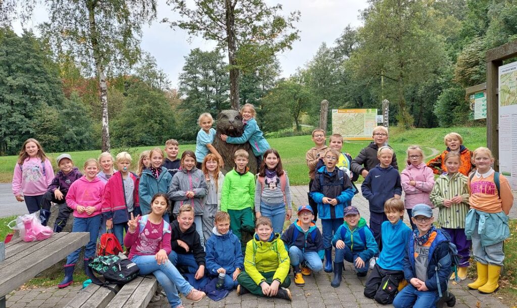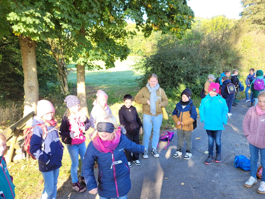 Am Donnerstag, den 2. Oktober, machten sich die Klassen 3a und 3b gemeinsam mit Frau Albrecht und Frau Ewers auf den Weg in den Wald. Dort erwartete sie die Försterin Janine Kohnen-Kamp, die den Kindern den herbstlichen Wald auf spannende Weise näherbrachte.