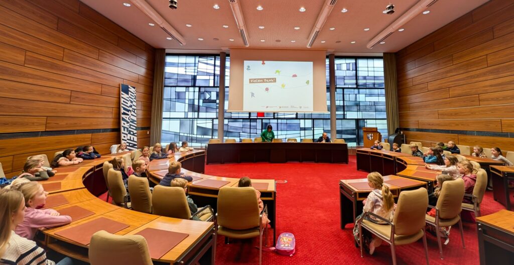 Unsere jüngsten Kulturstrolche werden im großen Saal des Rathauses vom Bürgermeister der Stadt Meschede begrüßt.