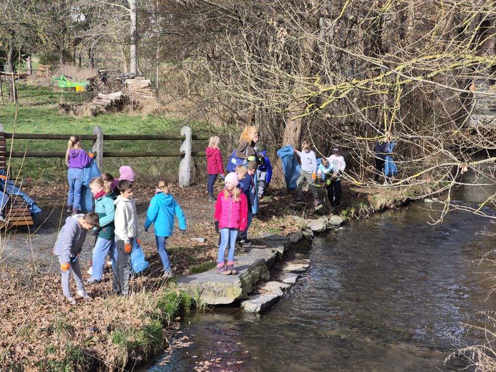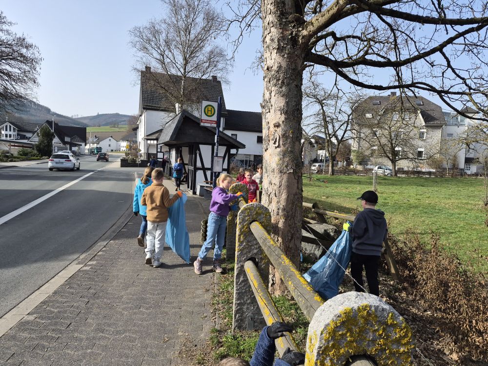Unsere Schülerinnen und Schüler der Klassen 3a und 3b räumen rund um die Schule auf und haben dabei viel zu tun.